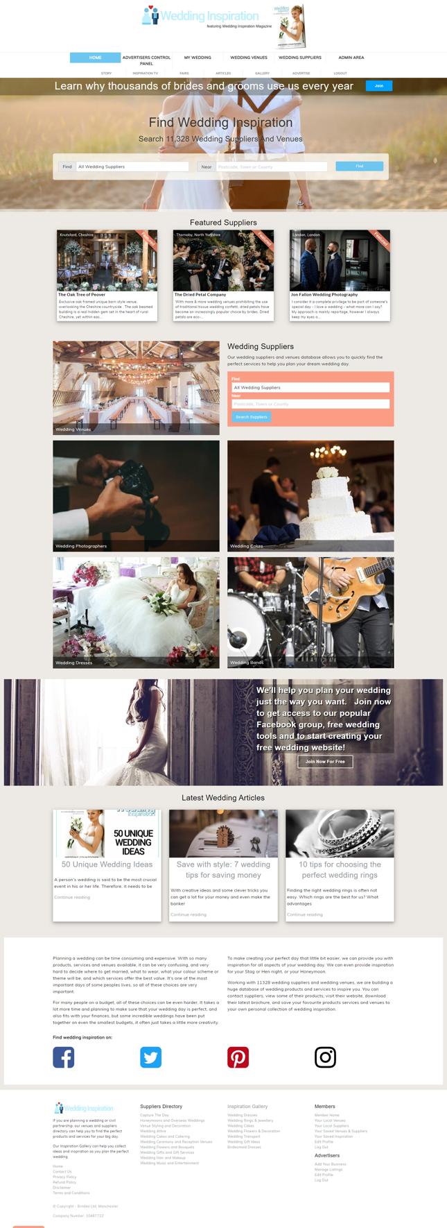 Wedding Inspiration is a premier wedding website based in the UK. It has thousands of suppliers who advertise on the site. The website is full with ideas, and inspiration making it the most valued resource for the UK's brides to be.